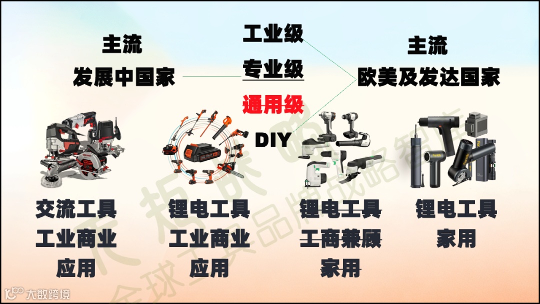 欧美市场聚焦高端专业工具与DIY级产品;新兴市场则分化为工业级专业工具与高性价比入门款。