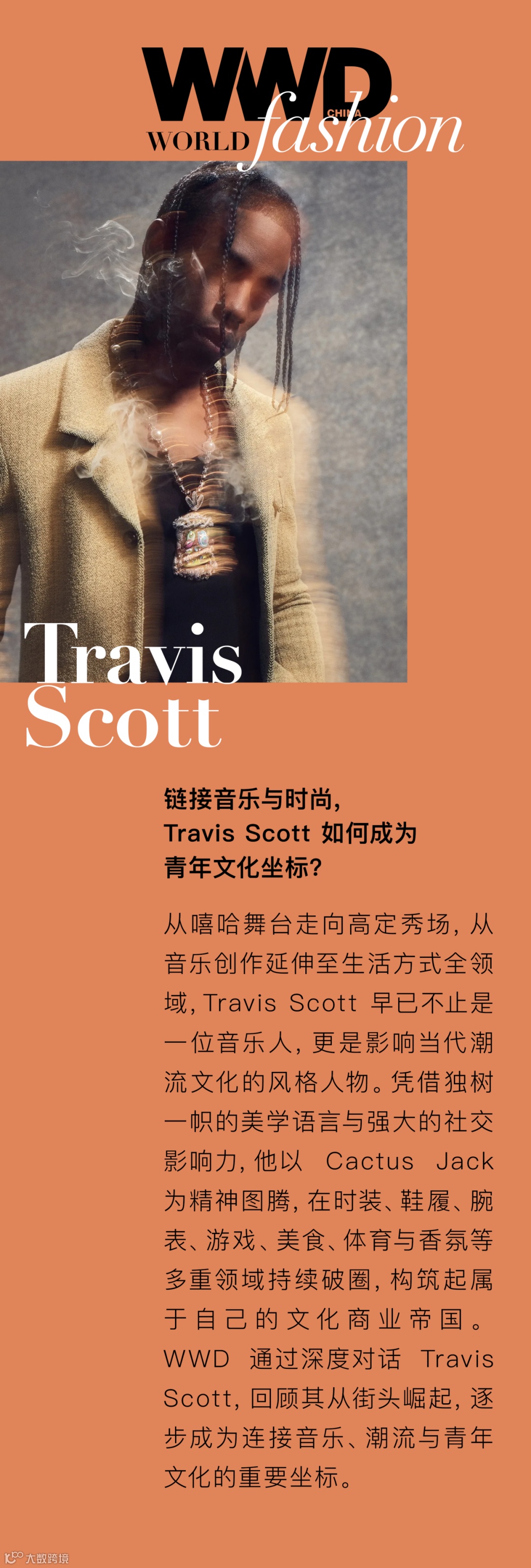 除音乐外,Travis Scott 深耕潮流、时装与青年文化核心场域,以多元身份持续拓展文化影响力,成为兼具全球号召力的文化标志性人物。