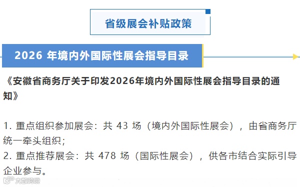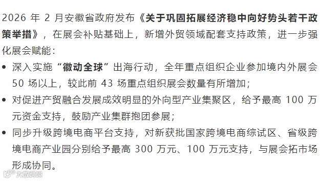 安徽省商务厅关于支持企业出海参展的政策通知
