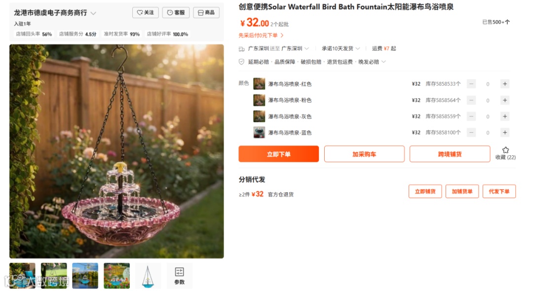 亚马逊庭院类目黑马:太阳能喷泉30天销量突破3500单