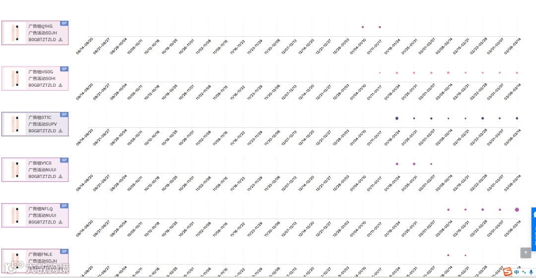 卖家共投放6组广告,含1组自动广告,其余均为手动精准词投放。