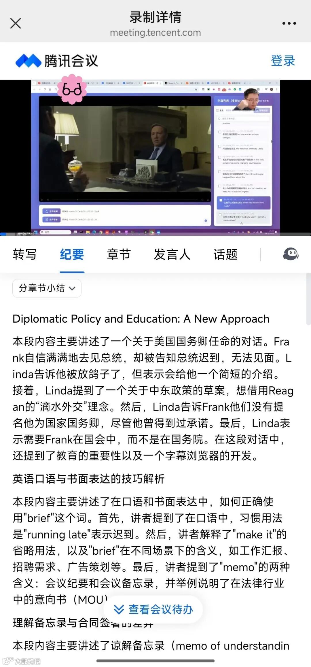 采用逐句精讲模式,结合腾讯会议AI总结功能,实现高效学习闭环。教学系统通过细致解析台词内容,在保障基础薄弱学员理解的同时,获得高水平学员认可。