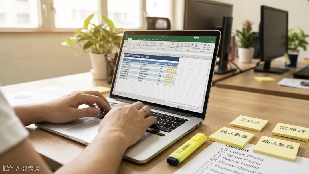 建立Excel“竞品档案”,记录店铺名称、主推产品、价格区间、MOQ、核心服务(如7天发货、免费定制等),为后续优化提供依据。
