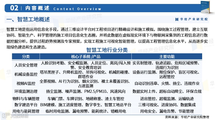 华经产业研究院发布《2026-2032年中国智慧工地行业发展潜力预测及投资战略咨询报告》,基于多年行业跟踪研究,融合桌面研究、定量调查与定性分析,系统梳理智慧工地行业发展态势、竞争格局与投资价值。