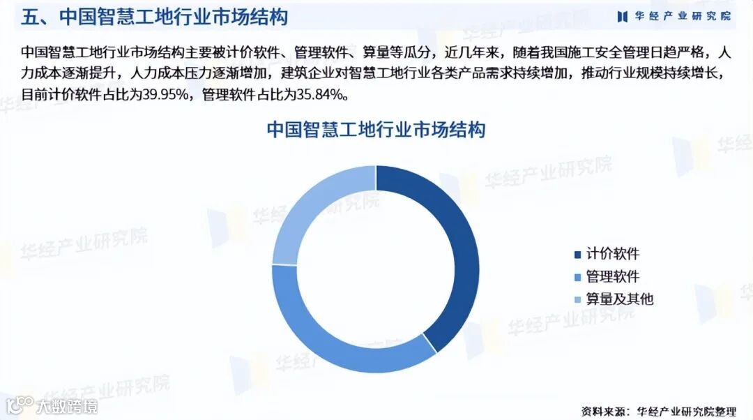 当前市场以计价软件(占比39.95%)、管理软件(35.84%)和算量软件为主导,安全监管趋严与人力成本上升持续拉动产品需求增长。