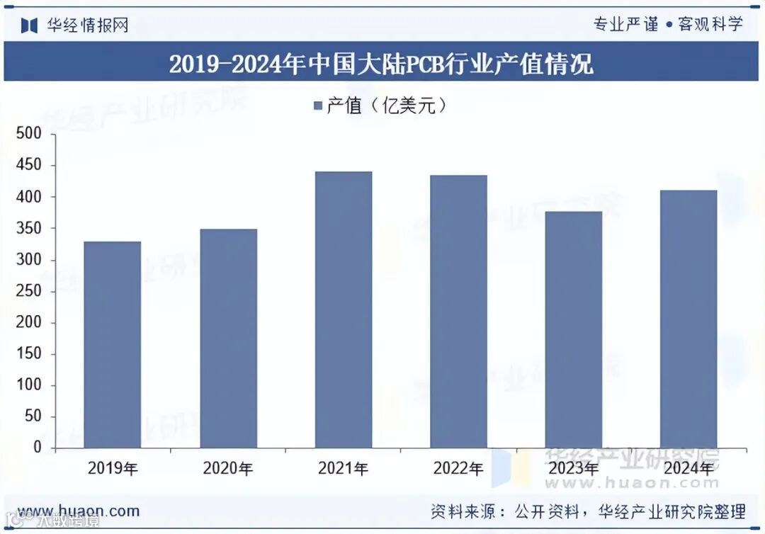 我国PCB产业已高度成熟,2024年产值达412.31亿美元,同比增长9%,全球占比超50%,稳居世界第一。在AI应用加速渗透驱动下,行业进入新一轮增长周期。