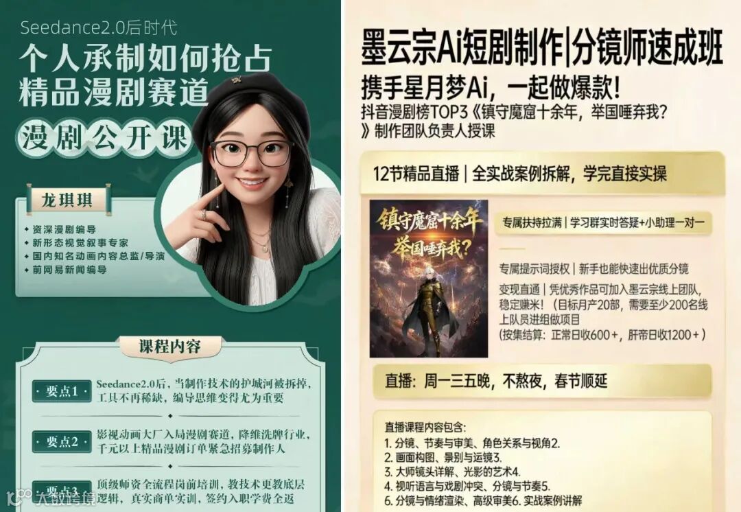 「星月梦AI」的做法非常直接:邀请爆款作品的制作人亲自授课。讲师中有资深漫剧编导,也有抖音漫剧榜TOP3作品的制作团队负责人(代表作《镇守魔窟十余年,举国唾弃我?》)。他们拥有实实在在的创作与商业化经验,深知创作者的痛点,能讲到关键上。