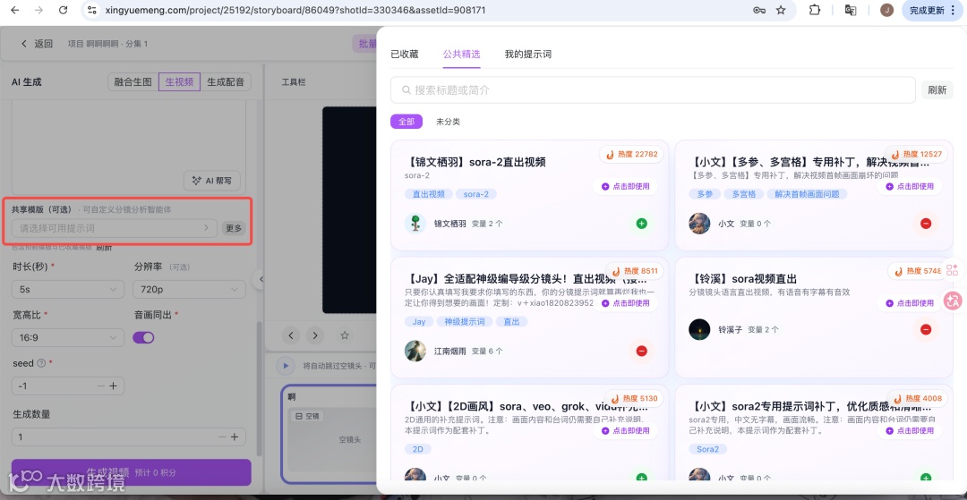 「星月梦AI」的共享模板覆盖提示词、分镜、画风创建等多样需求