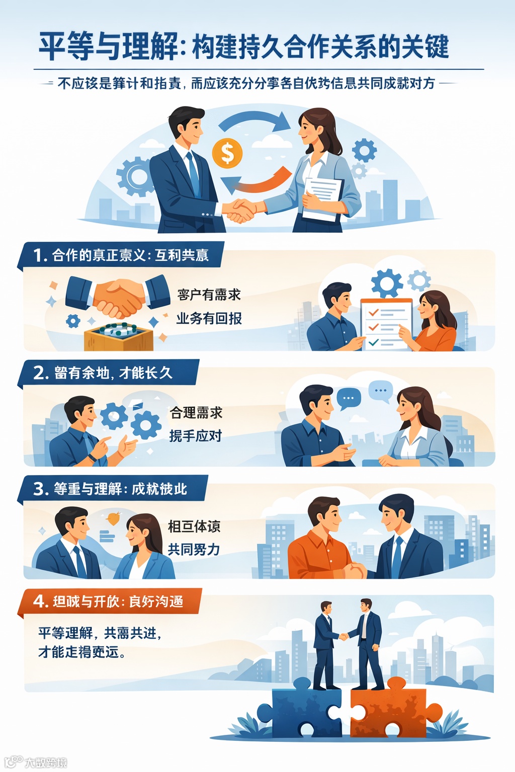 然而,合作中往往存在误解。客户可能觉得自己总是被“剥削”,而业务方可能觉得自己已经尽了最大努力。如果合作关系充满了算计和指责,最终将陷入恶性循环。