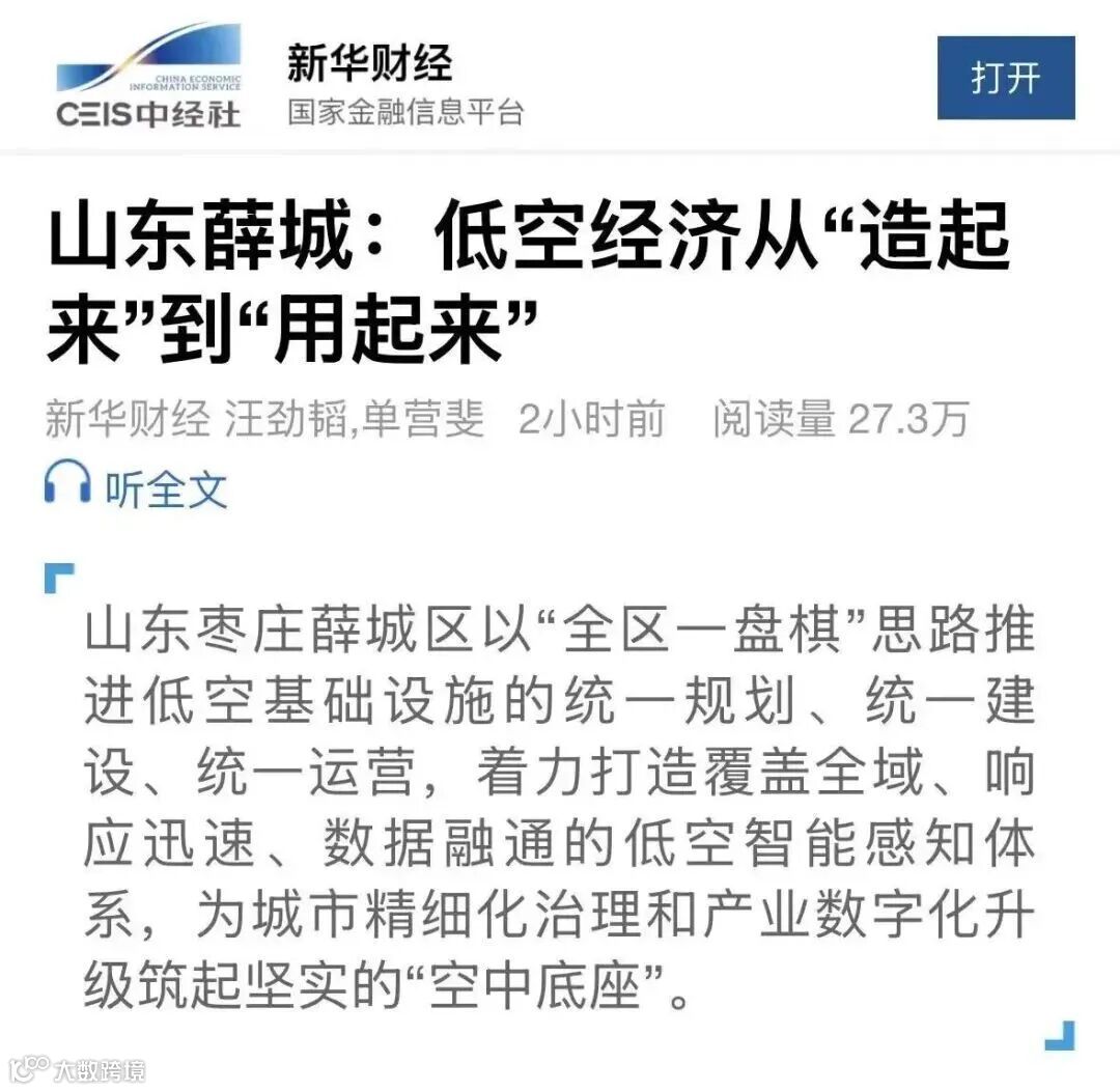 山东云图智航推动低空产业高效落地,引发新华财经、半月谈等权威媒体关注。薛城区的实践表明:当技术与需求精准对接、数据与治理深度融合,低空经济才能真正从“新风口”转化为“新引擎”。