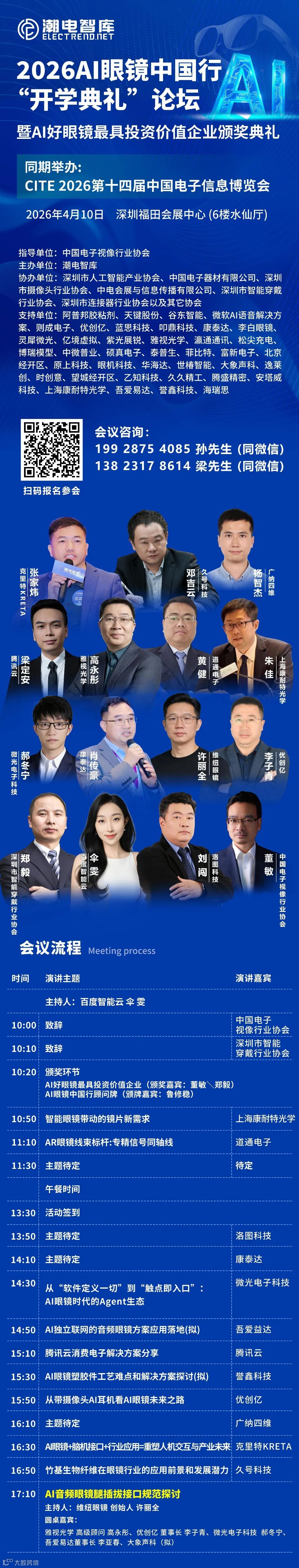 4月10日,2026年AI眼镜中国行将在深圳福田会展中心举办“开学典礼”。这不仅是一场行业盛会,更是一次以科技为笔、创新为墨,共同书写中国智能眼镜产业新篇章的启航仪式。同期,将举行CITE 2026第十四届中国电子信息博览会。
