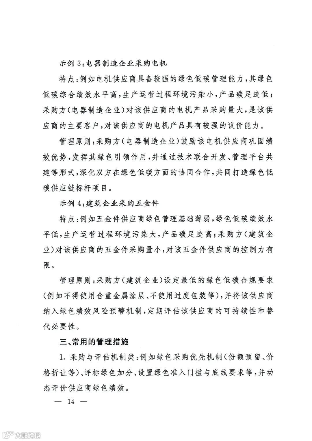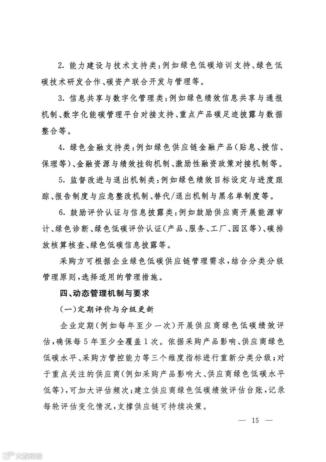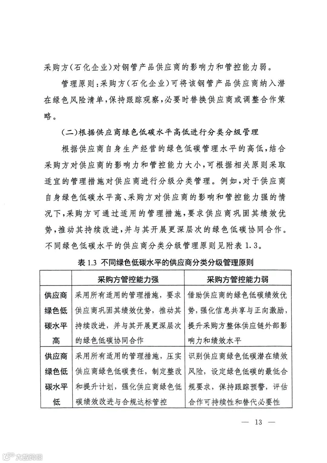 实施供应商绿色分类管理:央企会对供应商进行“绿色评级”。评级高的供应商会获得更多订单和更优厚的合作条件,评级低的则会被逐步淘汰。