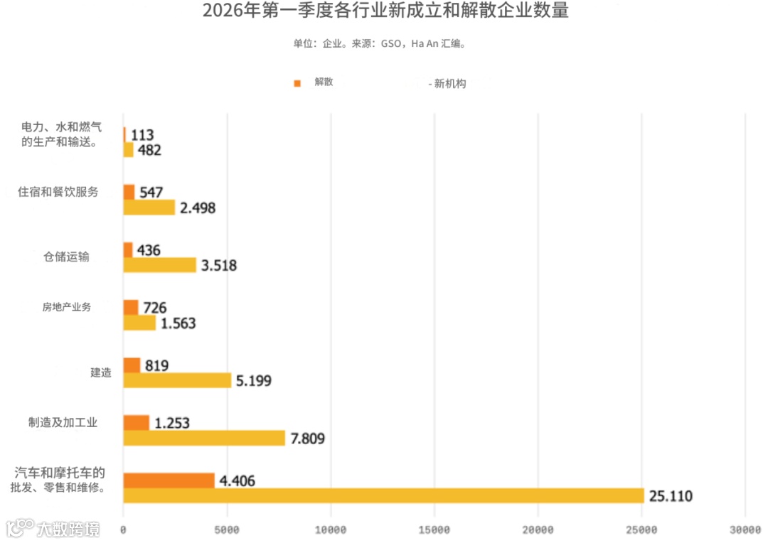 2026年第一季度,越南的企业生态正呈现出一种典型的“双向加速”:一边是创业与注册热潮,一边是持续不断的企业退出。