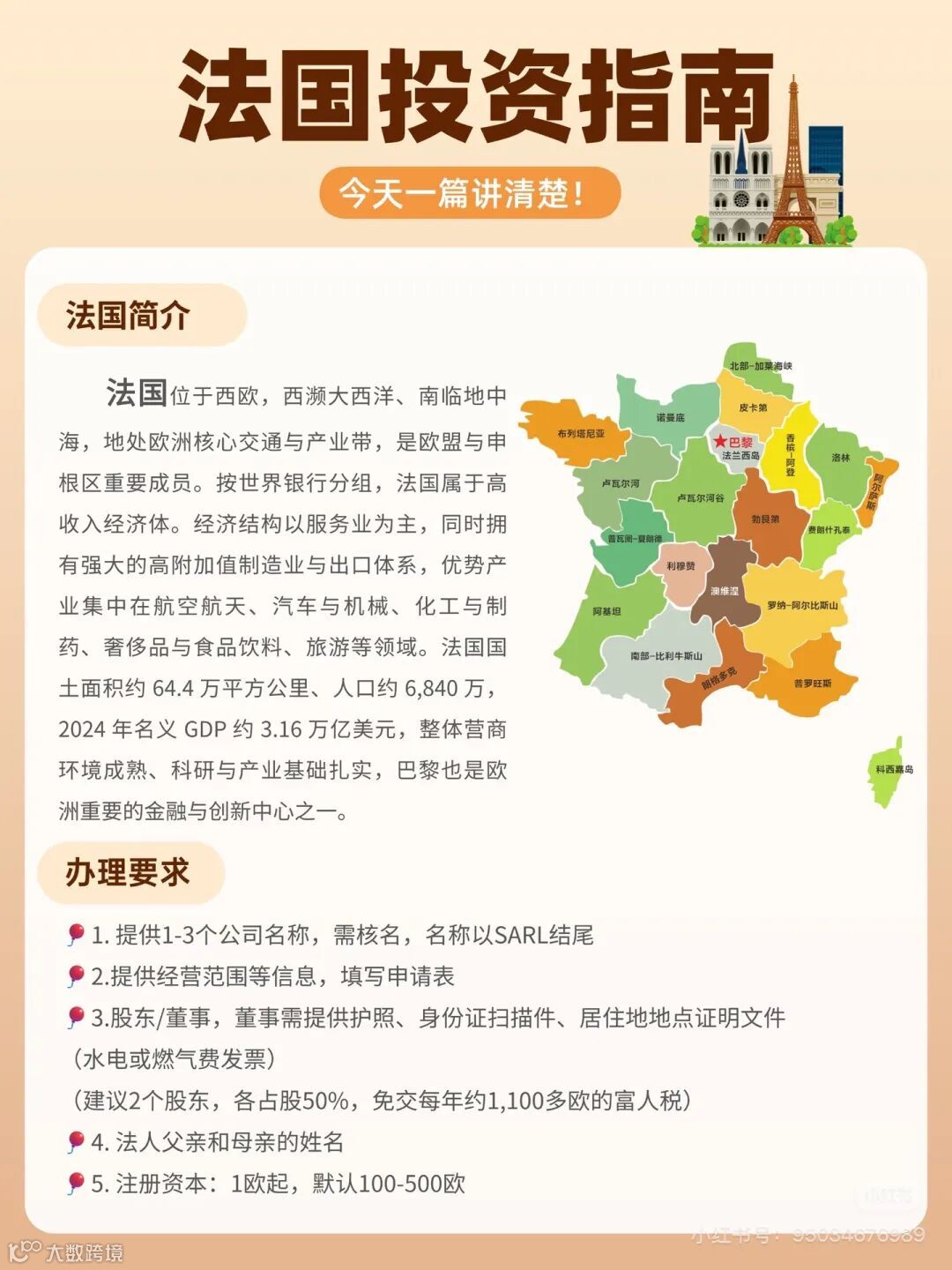 - 法国注册地址:须使用法国境内有效地址(专业机构可提供)