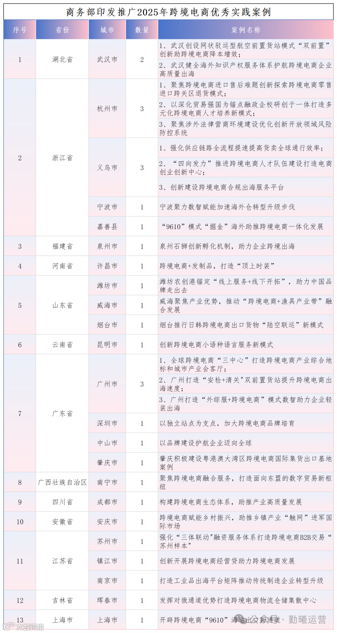 最后,除上述已详细发布的案例外,苏州市、镇江市、南京市、珲春市、上海市、中山市、广州市等多个重点城市也有优秀实践案例成功入选商务部《2025年跨境电商优秀实践案例》。