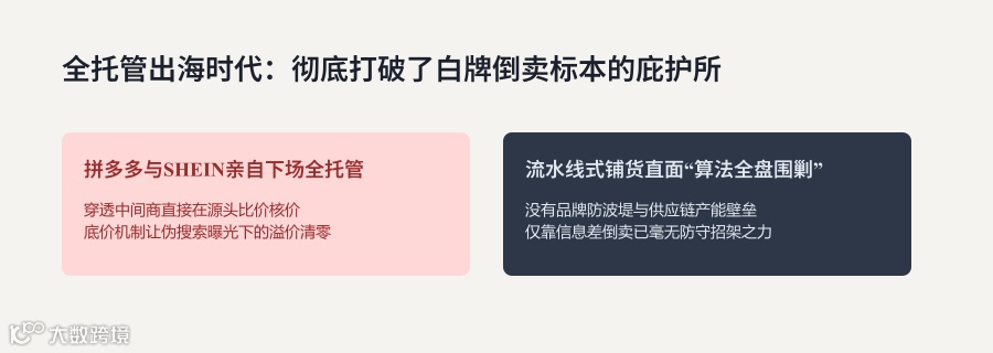 亚马逊后期讲品牌、讲 FBA,和纯铺货不完全同赛道。到了 Temu、SHEIN、TikTok 全托管/半托管起来,平台抓流量和定价,再往下找厂供货,传统“多店铺货赚信息差”的空间被挤掉。没有研发和品牌的白牌流水线,很难和平台的算法比价硬扛。