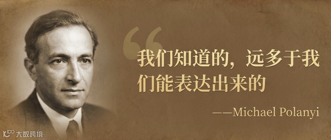 Michael Polanyi(1891-1976)是匈牙利哲学家兼化学家。1966年,他在《The Tacit Dimension》中提出经典论断:“We know more than we can tell.” 意指人类知识分为两类——可表述的显性知识,以及依赖经验与感觉的默会知识。后者构成人类智慧的基础层。