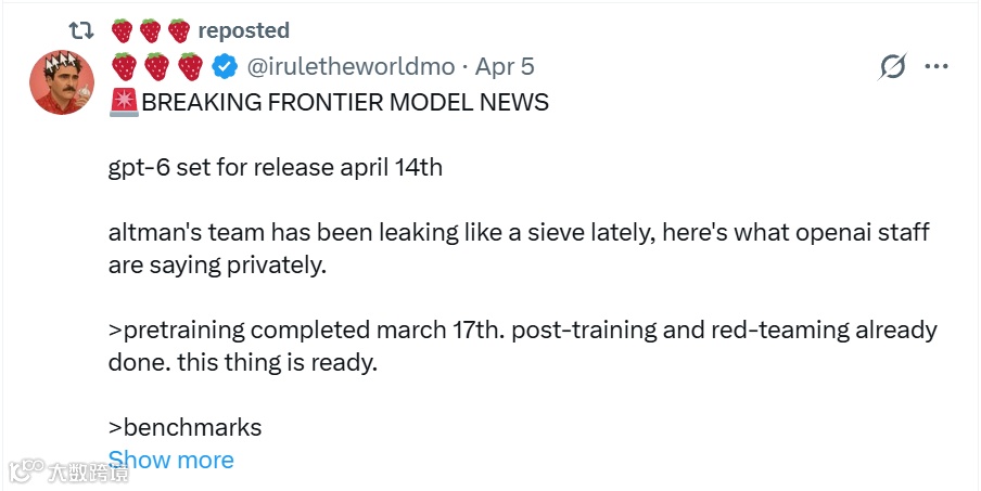 X平台辟谣指出,4月14日GPT-6传闻系快速传播的虚假信息。消息源头账号@iruletheworldmo无任何认证且历史准确率极低,此前多次发布错误信息。OpenAI未进行任何官方预热或暗示,业内人士普遍认为:“重大发布不可能毫无动静”,此类消息仅为流量噱头。