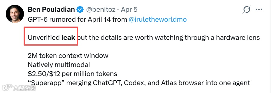 近日,网络广泛传播4月14日GPT-6即将发布的消息,声称其具备AGI级推理能力且参数突破10万亿。但24小时内,该消息被证实为虚假泄露,引发舆论迅速反转。
