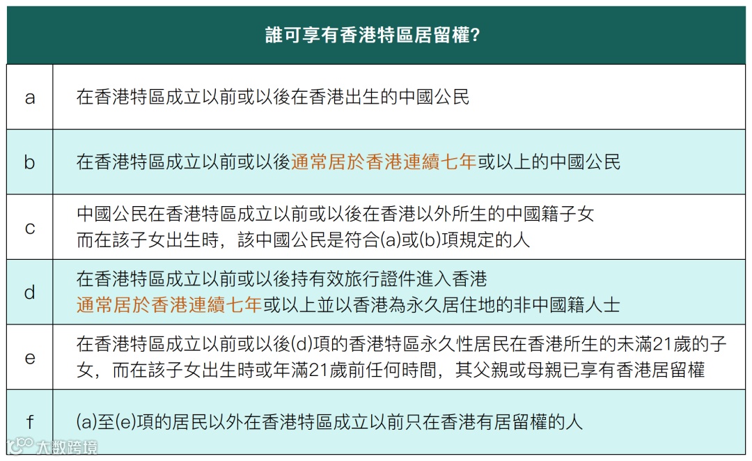 根据《基本法》及《入境条例》,六类人士属香港永久性居民,依法享有居留权。通过人才计划赴港人士,核心判定标准为"通常居于香港连续满七年"。