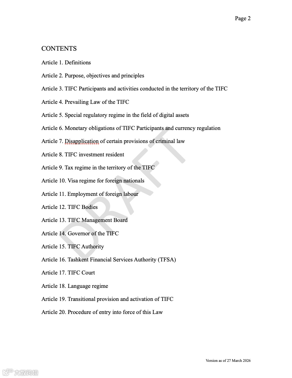 乌兹别克斯坦投资、工业与贸易部已公布《塔什干国际金融中心宪法性法律草案》,面向全球征集意见。