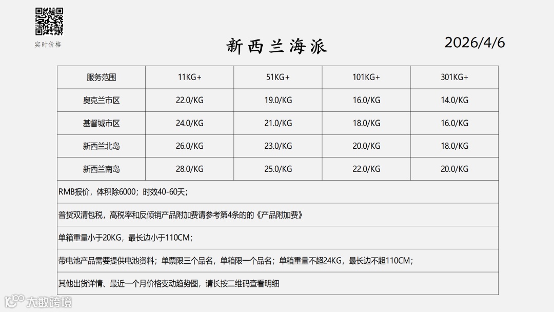 新西兰物流专线-海派