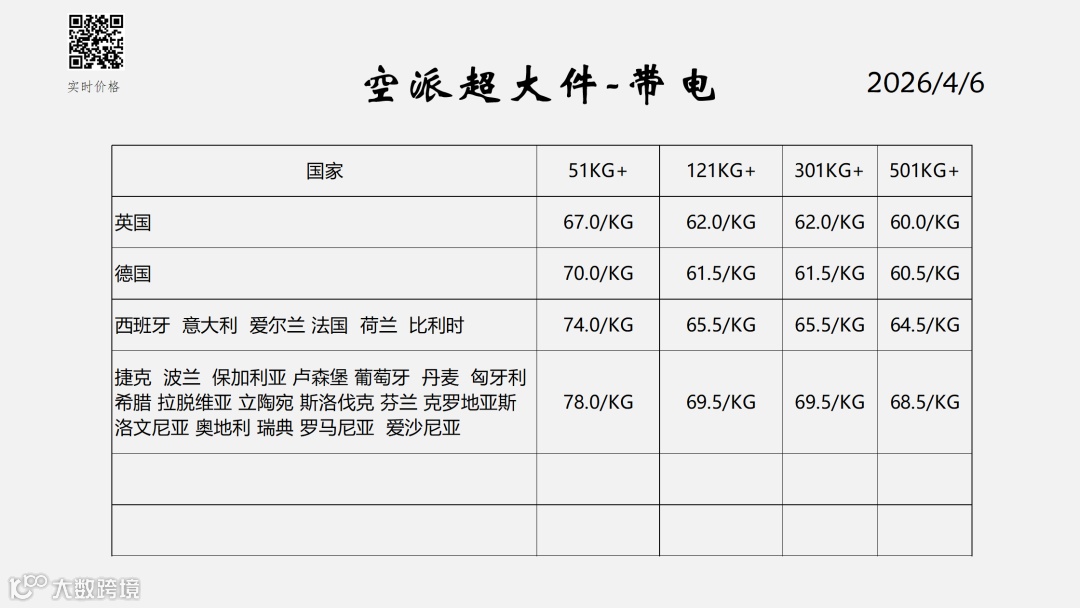超大件双清包税价目表(仅适用部分邮编,完整报价需单独确认)