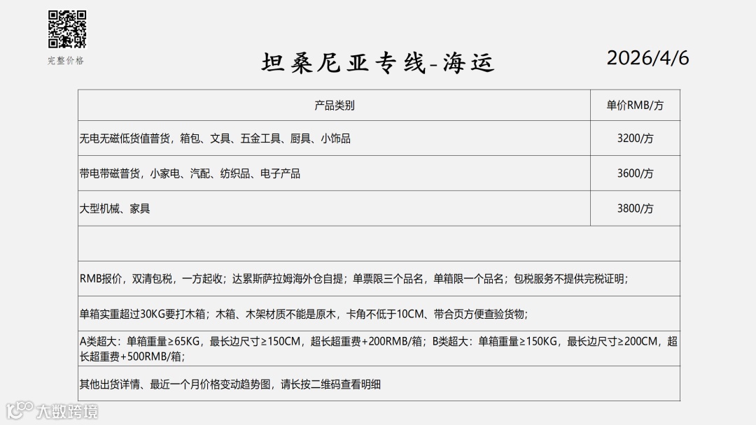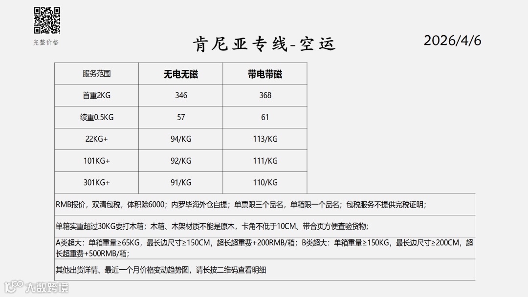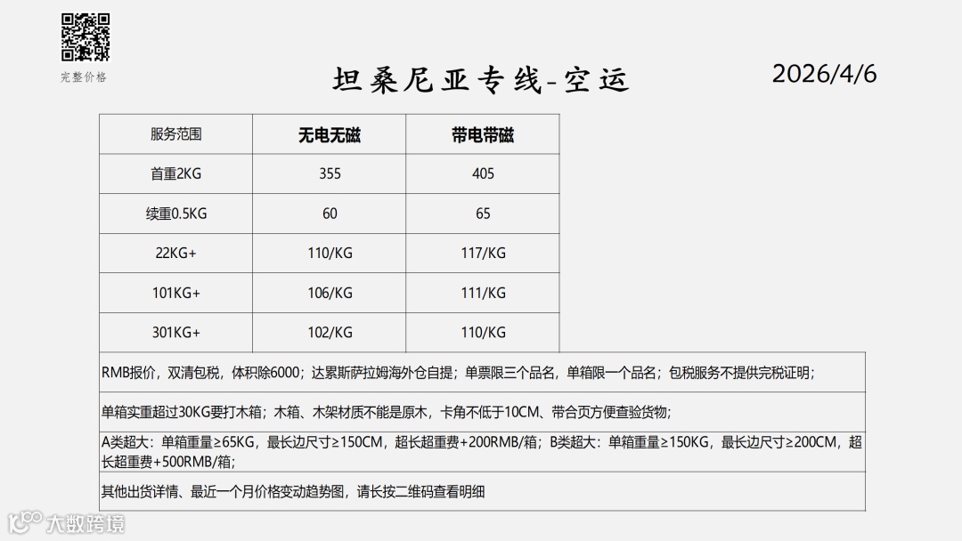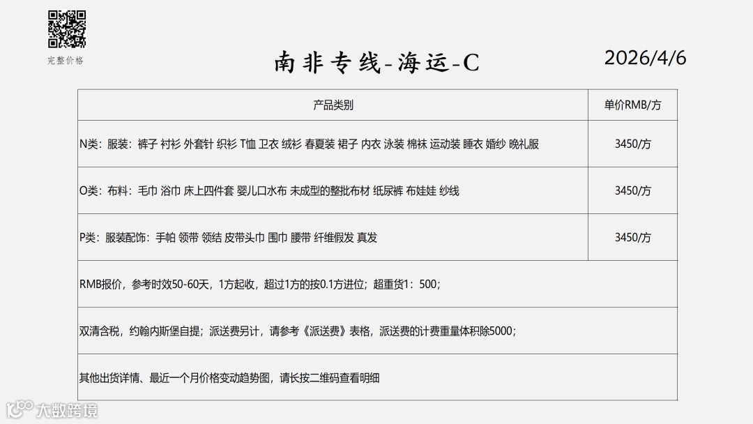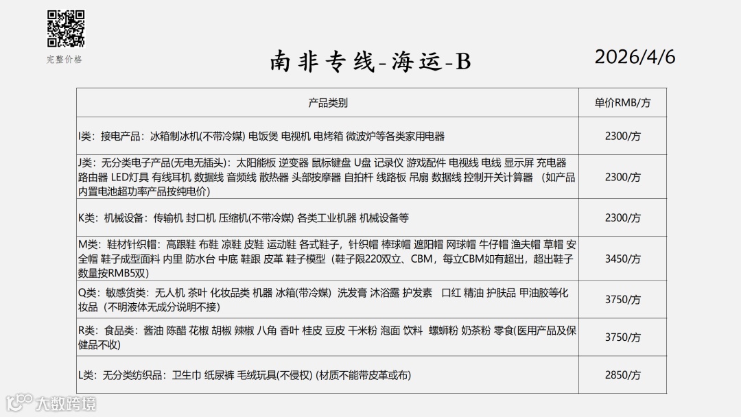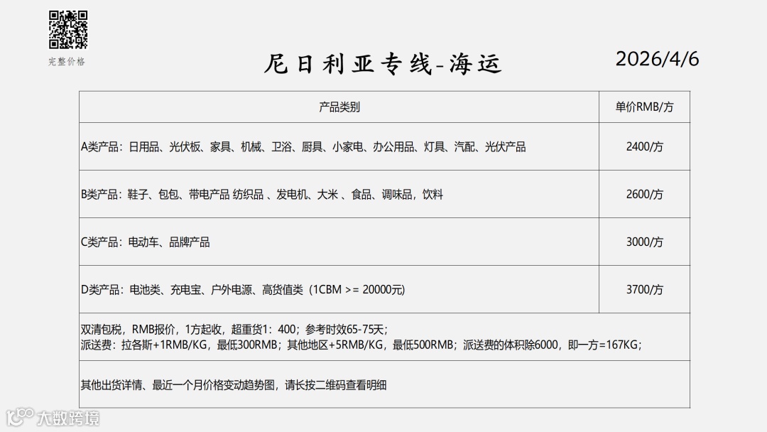 非洲双清包税物流报价表——2026-4-6