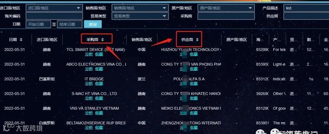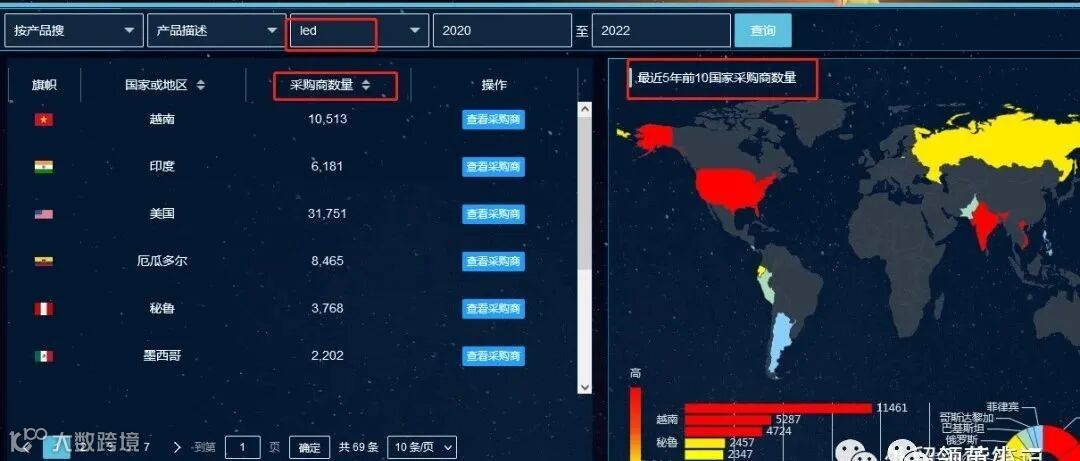 查询产品历史交易记录(包括进出口国、采购商、产品描述、数量及金额),识别热销品类与增长市场,指导出口策略优化。