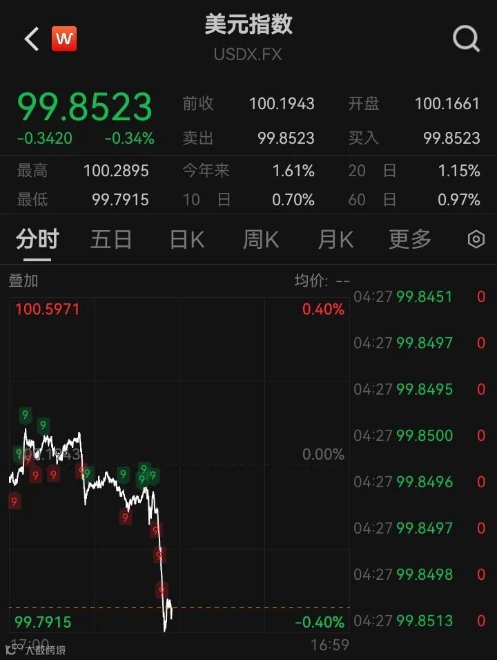 一、 美元指数为何跌破100?地缘信号逆转是核心