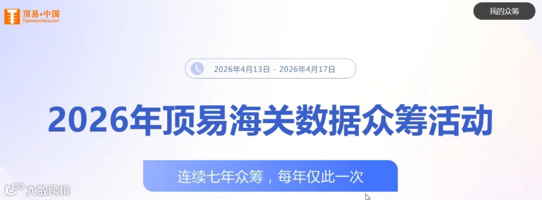 顶易已连续七年开展海关数据众筹,服务超千家外贸企业。本次数据覆盖全面,续费客户可持续享受众筹价格。