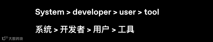 OpenAI确立「系统>开发者>用户>工具」的指令层级结构:高优先级指令具备最终决定权,低优先级指令仅在与高优先级规则兼容时生效。例如: