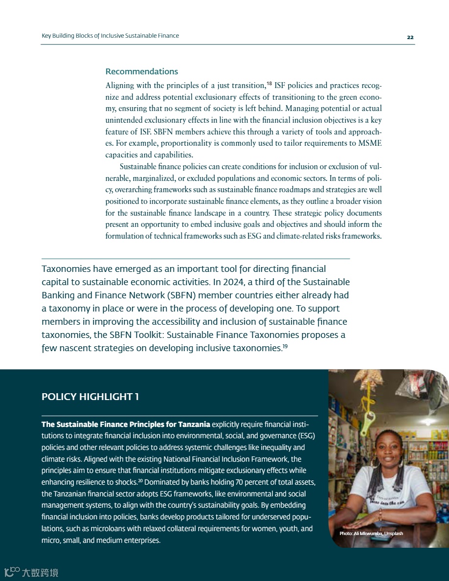 • 多国央行对绿色信贷设置定向配额(如突尼斯规定30%-35%须投向正向社会影响的中小企业),重点支持微型企业(MSMEs)与女性主导企业。