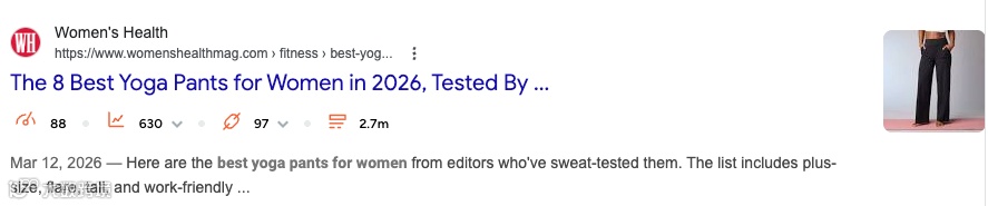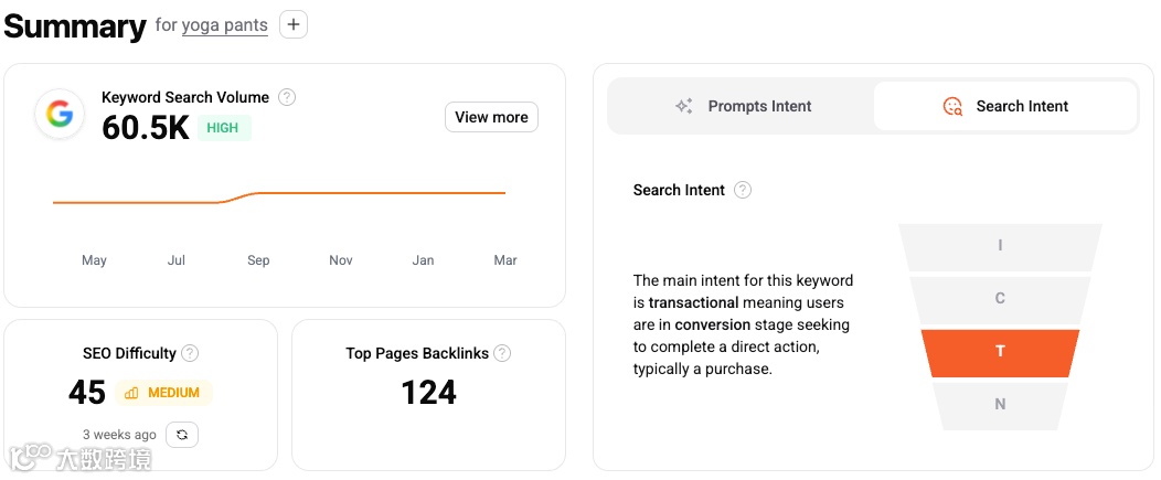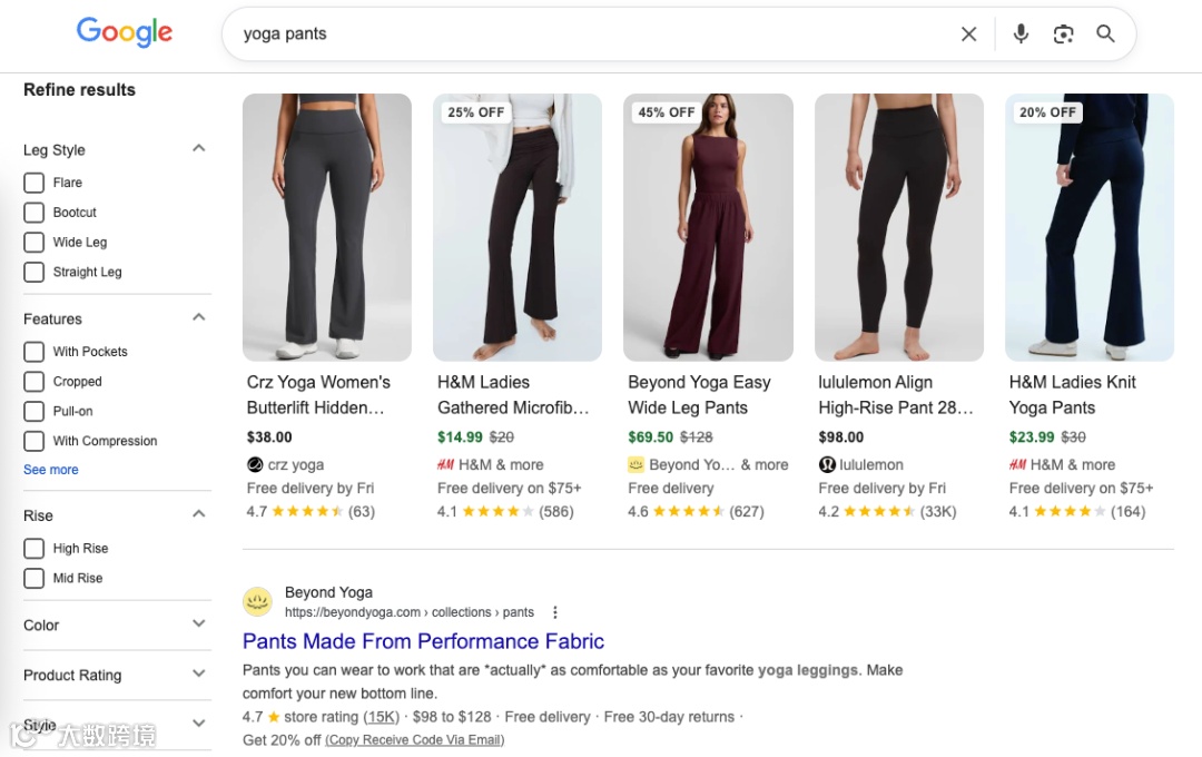 以典型商业关键词「yoga pants」为例:用户搜索意图明确指向商品购买。