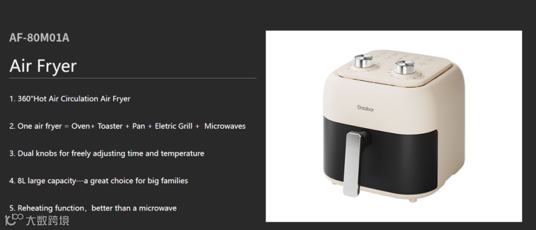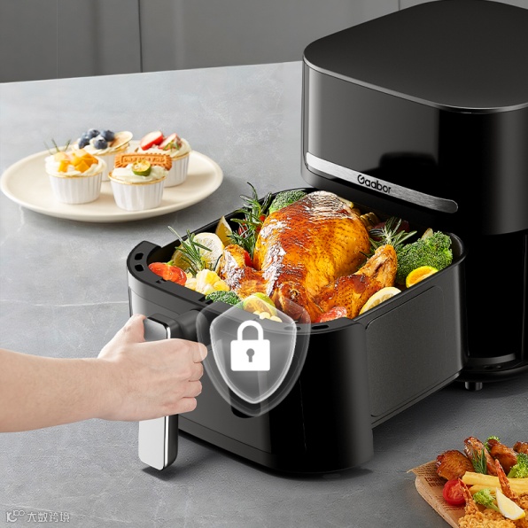 Gaabor通过深度本土化打造产品与营销双引擎。针对东南亚家庭聚餐频繁的特点,其空气炸锅容量扩大至6.5L-8L;自主研发的Dual Circo双循环系统解决食材水分流失问题;水滴型防滑握把适配湿手操作环境。外观设计同步满足当地金属质感审美偏好,甚至为巴西市场推出红色限定款。