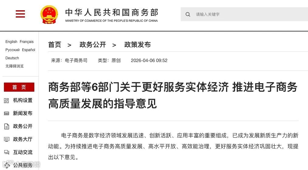 为深入贯彻党中央关于促进实体经济和数字经济深度融合、扩大电子商务制度型开放等重要部署,激发电子商务内生动力、创新潜力、开放活力,助力巩固壮大实体经济根基,更好服务经济社会高质量发展,商务部会同有关部门研究起草了《意见》,并于近日正式印发实施。