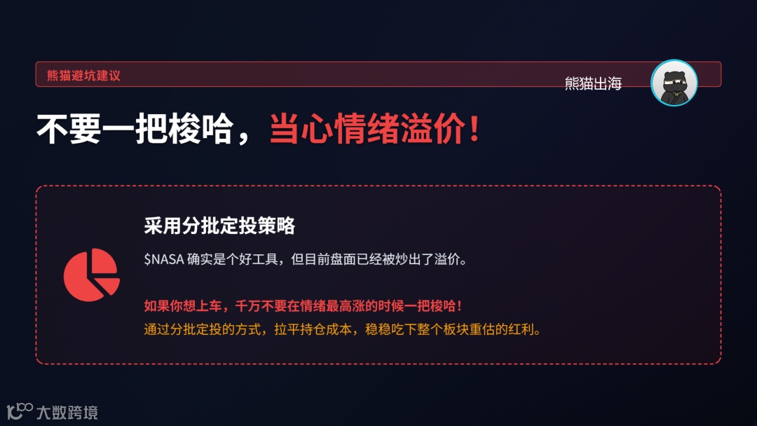 $NASA 确实是个好工具,但目前盘面已经被炒出了溢价。如果你想上车,不要在情绪最高涨的时候一把梭哈,可以通过分批定投的方式,吃下整个板块重估的红利。