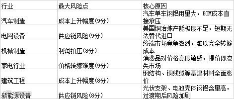 机械与家电制造业的“转嫁困境”。 农业机械、暖通空调(HVAC)、白色家电等行业的金属含量普遍较高。在竞争充分的终端消费市场,这些下游企业很难通过提高零售价将新增的关税成本完全转嫁给消费者。一旦成本无法向下传导,企业的毛利率将直接受损,部分规模较小的制造企业可能面临生存危机。
