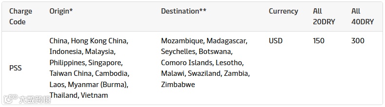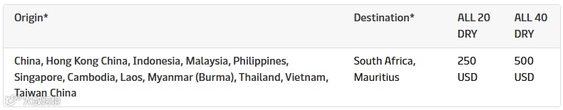 马士基在远东至南非及毛里求斯航线加收旺季附加费,标准为20尺箱250美元、40尺箱500美元,自4月6日起执行。