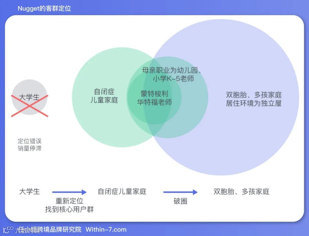目前Nugget的主要用户是双胞胎、多孩家庭,大部分儿童的年龄在1-3岁,居住环境是独立屋(带前后院,独门独户的house叫独立屋,就是我们常理解的别墅)。其中母亲职业为幼儿老师或小学老师的家庭是核心用户,而蒙特梭利教育和华特福教育的老师是核心的核心。