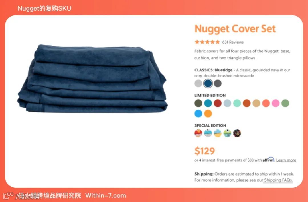 但Nugget的复购SKU设计的非常好:可替换的彩色布套,售价为129美金-159美金。