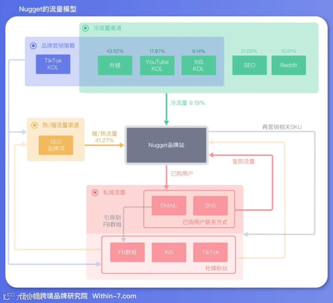Nugget由于冷流量的主要来源是品牌曝光策略,那么大量的流量不会直接到官方网站去购买,如果不做私域流量去承接这部分用户,就太浪费了。
