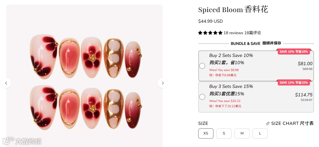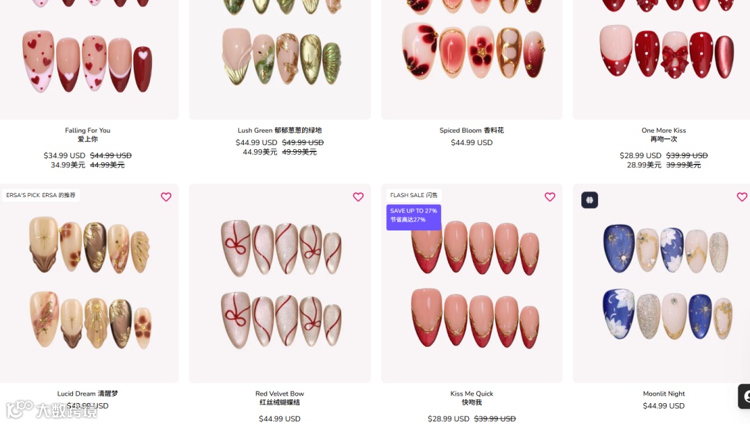 Ersa Nails成功将穿戴甲从便捷替代品提升为审美表达载体。其产品定价29.99–44.99美元,远超国内10-15元市场均价,溢价核心源于三层结构:设计密度、情绪场景与品牌叙事。产品注重视觉冲击力与摄影表现力,如“传世之梦”系列融合故宫景泰蓝、点翠等传统工艺,强调每日情绪适配性,更接近时尚配饰而非消耗品。