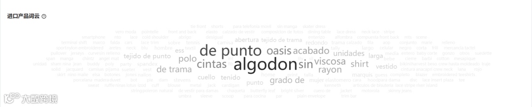 基于提单数据生成的词云,可直观反映客户进口产品品类及需求强度:字号越大、位置越靠前的产品,代表客户需求越旺盛。