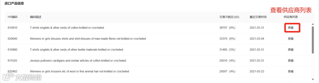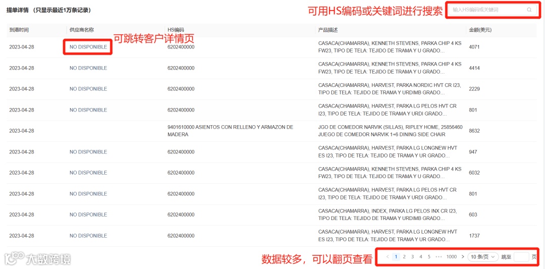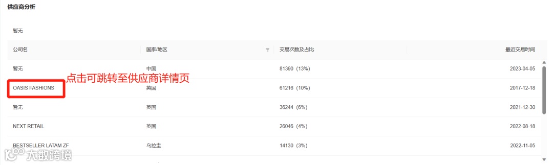 供应商分析功能展示客户合作历史,点击供应商名称可跳转详情页,助您掌握同行动态与竞争格局。提单详情提供近万条交易记录,精准判断客户采购意向。进口产品信息模块则展示各品类交易频次与时间节点,并附带对应供应商列表。