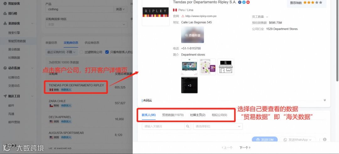 选定目标客户后,点击公司名称进入详情页即可展开深度分析。