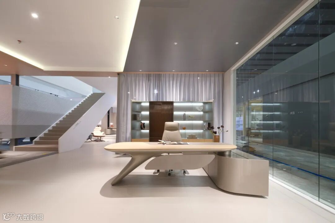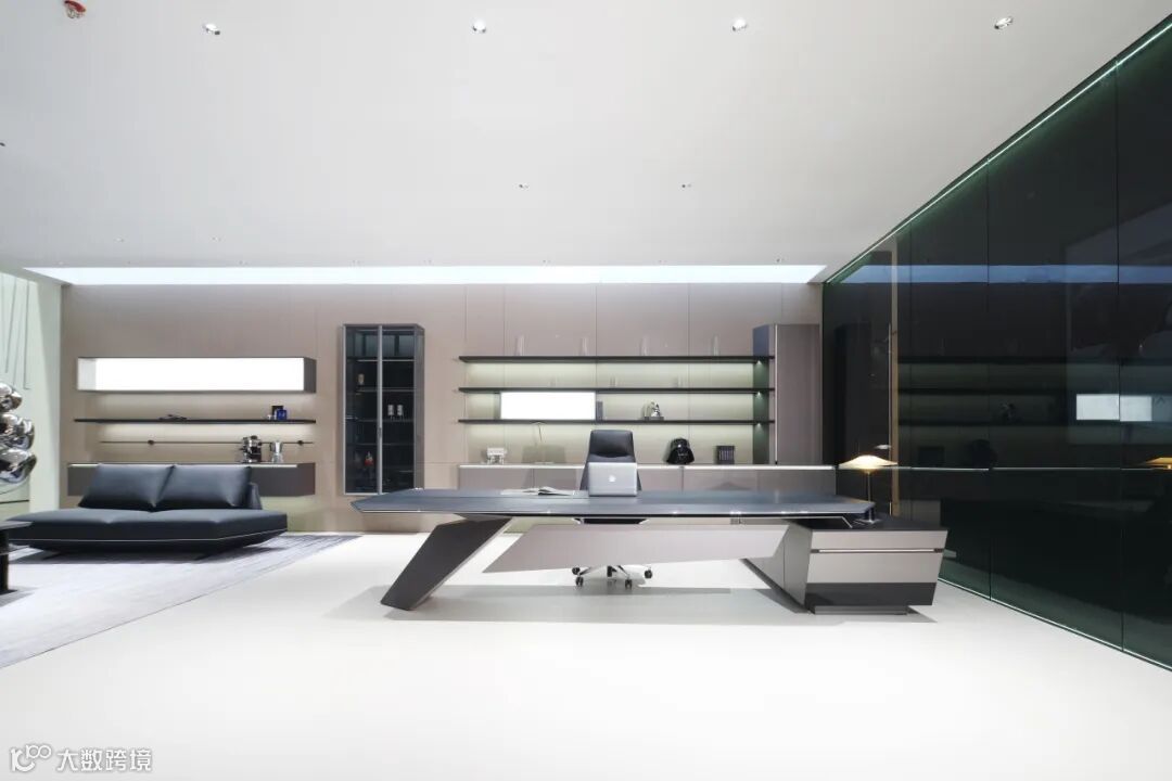 极光系列以光影为语言,却在光的流动中,藏着一道道克制的棱线。不追求视觉的冲击,而是营造一种气韵——高定总裁区有沉静的矜贵,职员位有克制的秩序,沙发区有锋芒筑就的安稳。