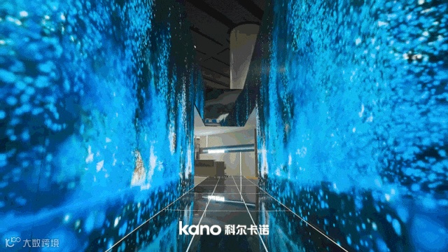 展馆入口处,两面巨大的屏幕铺展开来,光影在屏幕上缓缓流动,将整个入口浸染成一幅动态的廊道画卷。