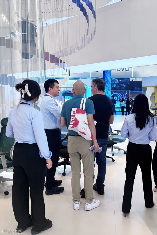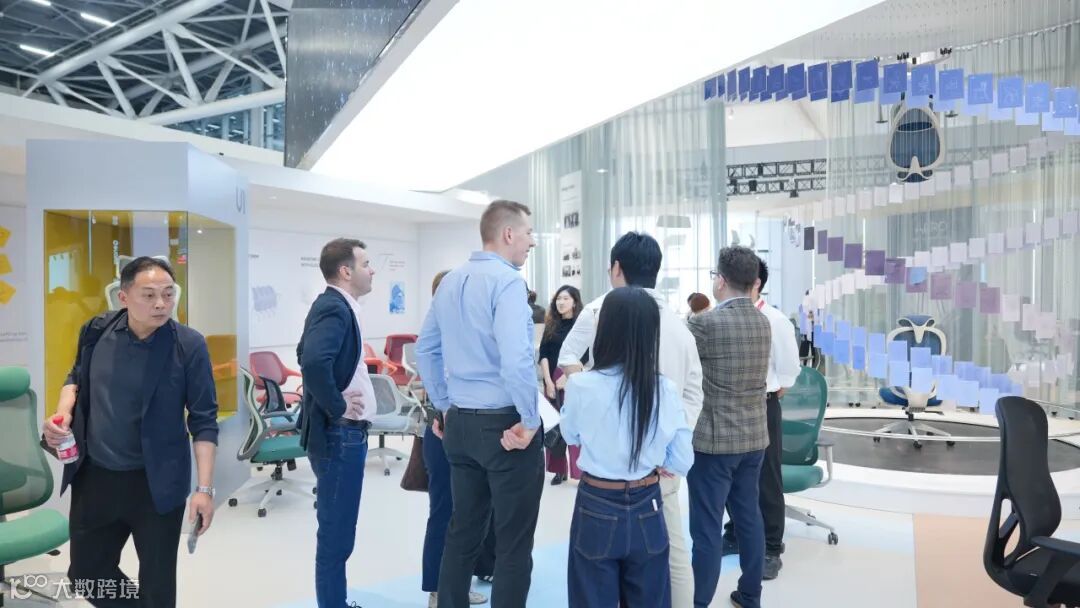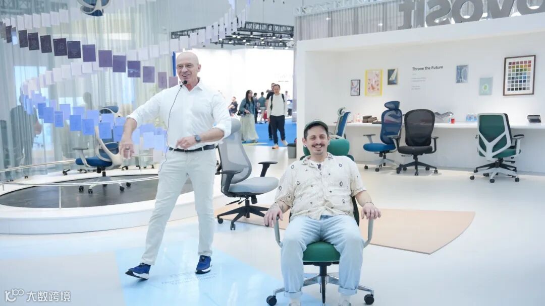 馆内现场交流氛围浓厚,客户们不时驻足观赏产品细节,并亲身入座体验,互动频繁,展位人气持续高涨。
