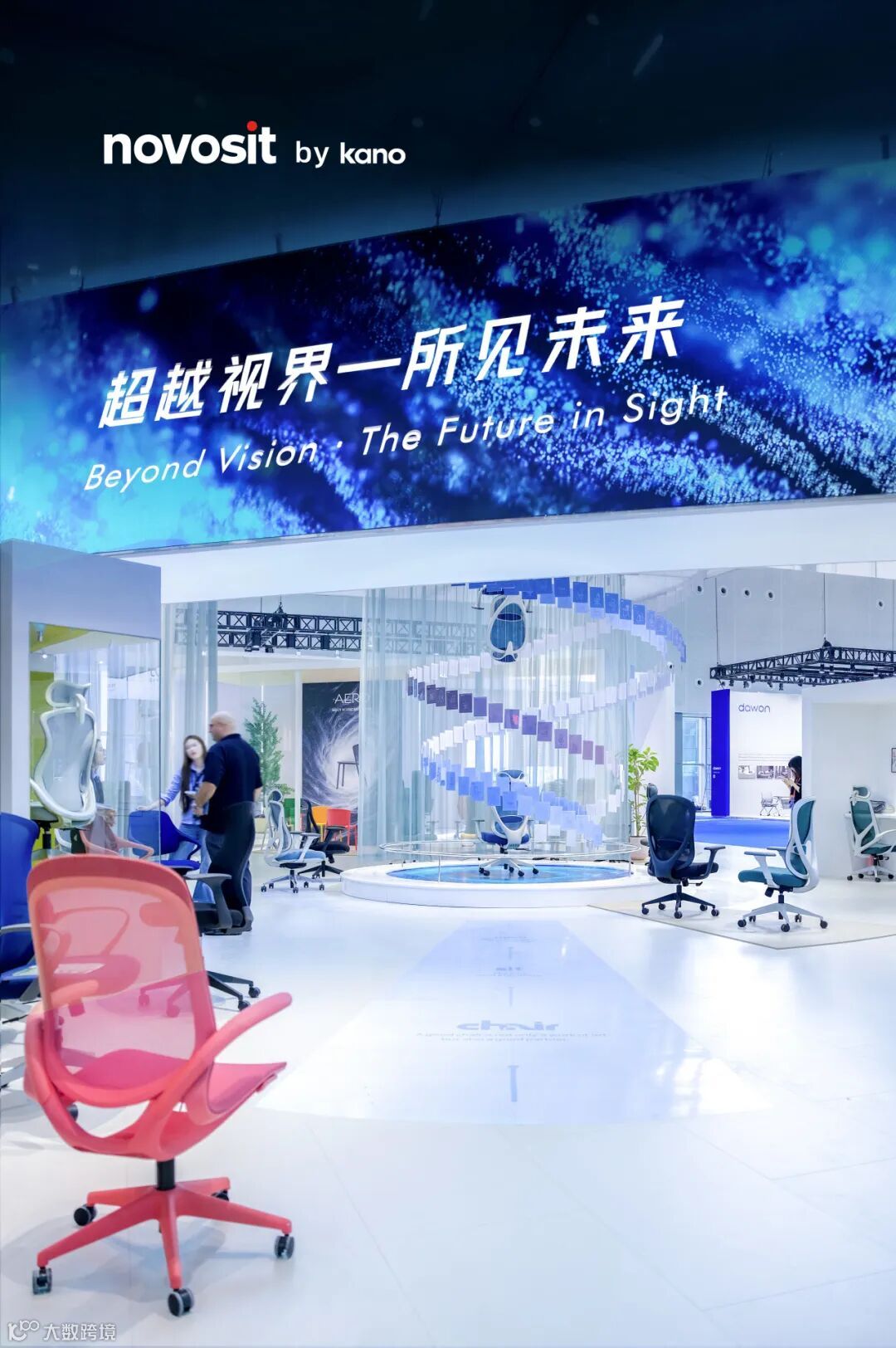 展馆以一座极具未来感的螺旋装置为精神内核,构筑出通往更辽阔视野的起点。展馆中央,巨大的螺旋结构仿佛一条不断上升的路径,承载着品牌对“超越”的全新探索。